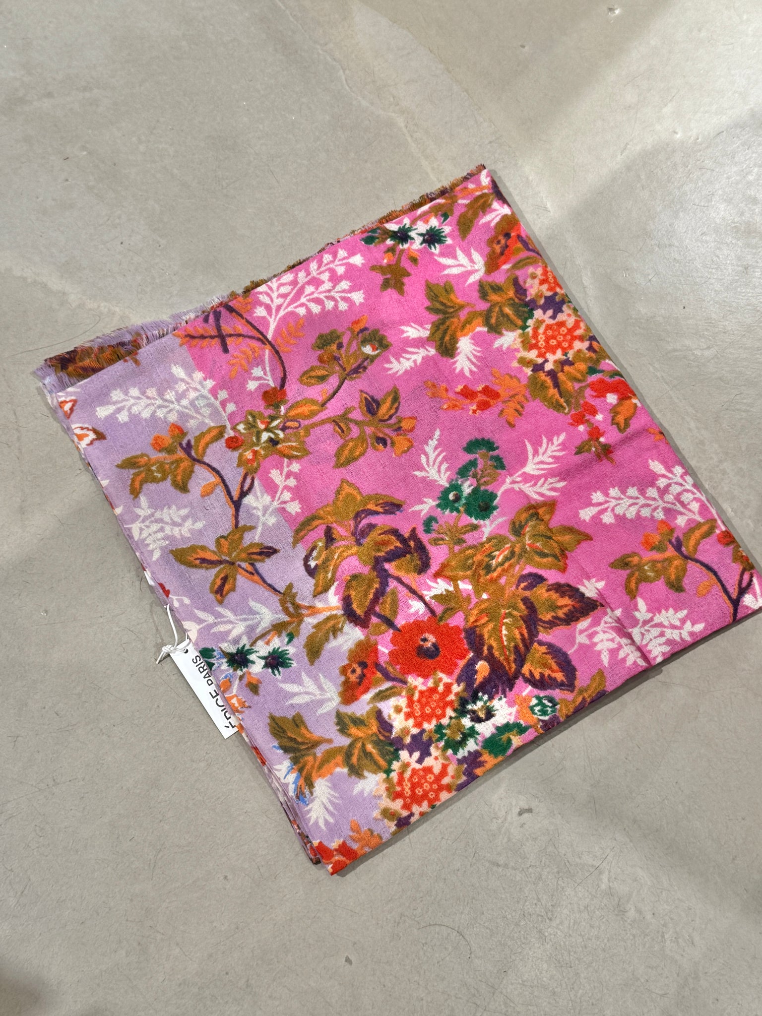 Épice Schal mit floralen Muster in der Grundfarbe Rosé. Jedes Stück von Hand gewebt und gefärbt. Schmückt den Mantel, das Kleid oder einen schlichten Pullover wie ein kleines Kunstwerk.