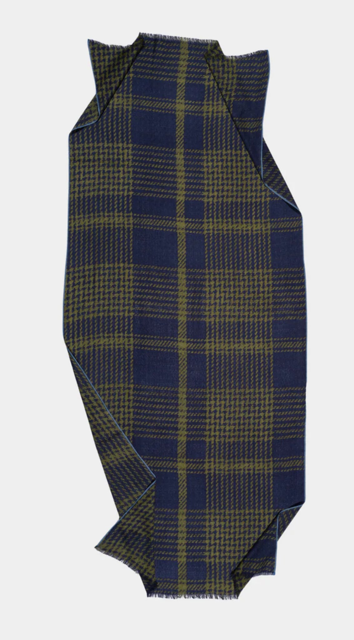 Épice Schal mit Check Muster in den Farben Blau mit Camel. Jedes Stück von Hand gewebt und gefärbt. Schmückt den Mantel, das Kleid oder einen schlichten Pullover wie ein kleines Kunstwerk.