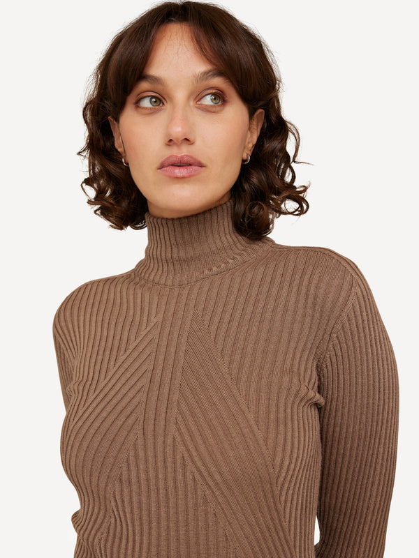 Wholegarment  Pullover mit hohen Kragen aus feinster Merinowolle. Das gerippte Material ganz ohne Nähte, führt zu seiner dreidimensionalen Silhouette, die sich der Körperform perfekt anpasst. Ideal als Basisteil.