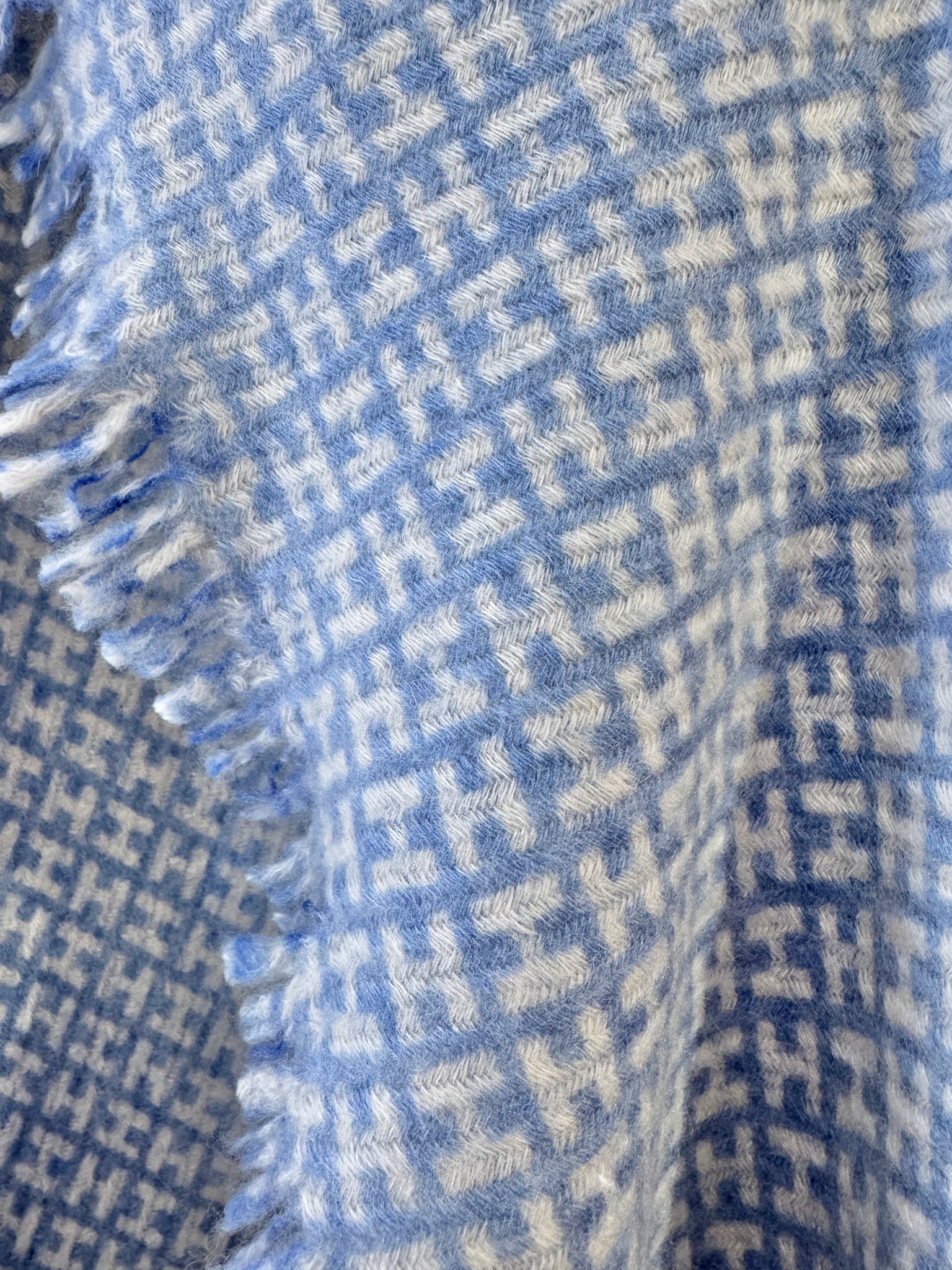 Dreieckstuch aus 100% Cashmere, gewebt mit Franzen. Signaturemuster, H allover Print.