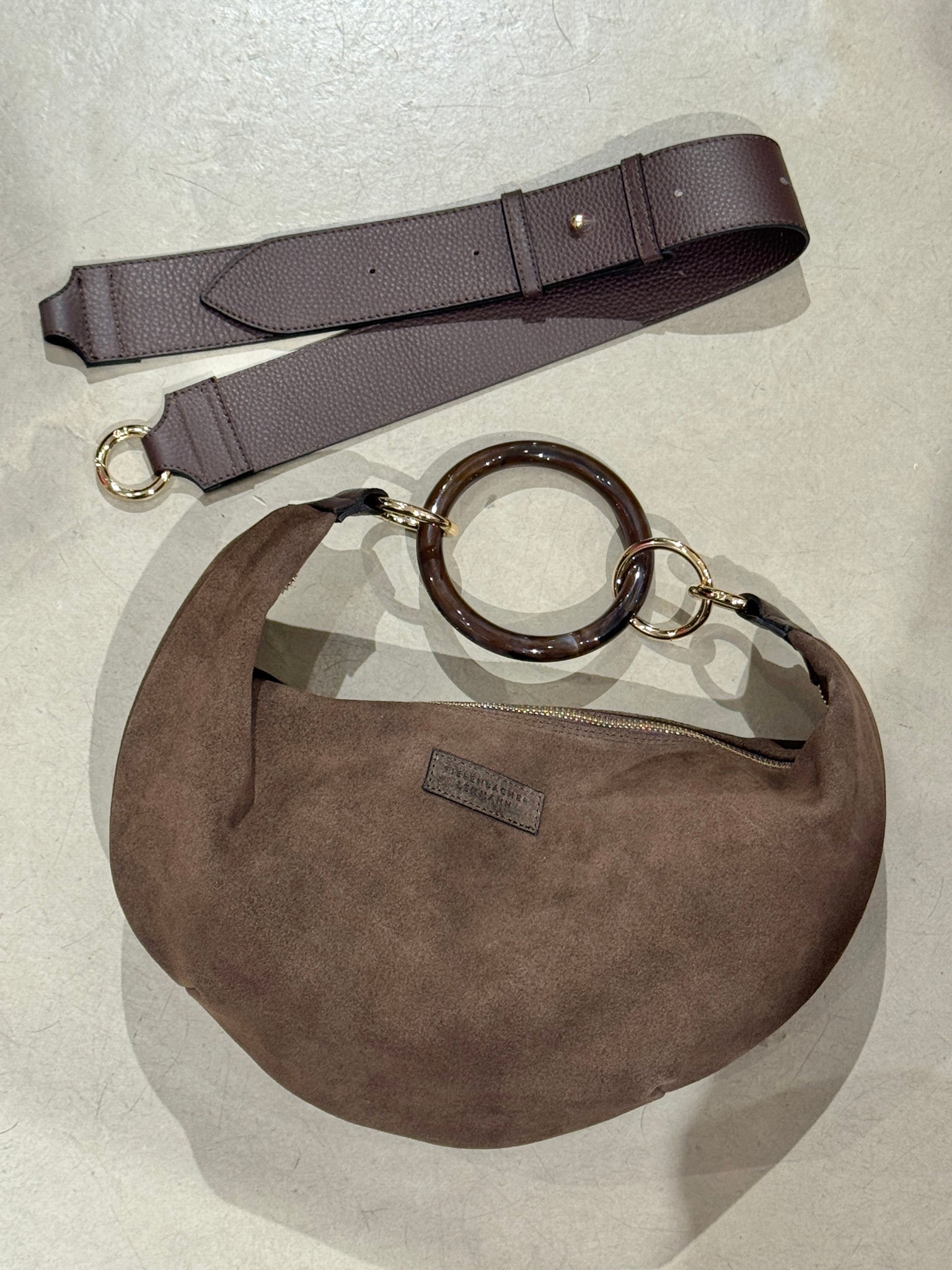 Neu! Die MOON BAG aus Velourleder in Schokobraun.