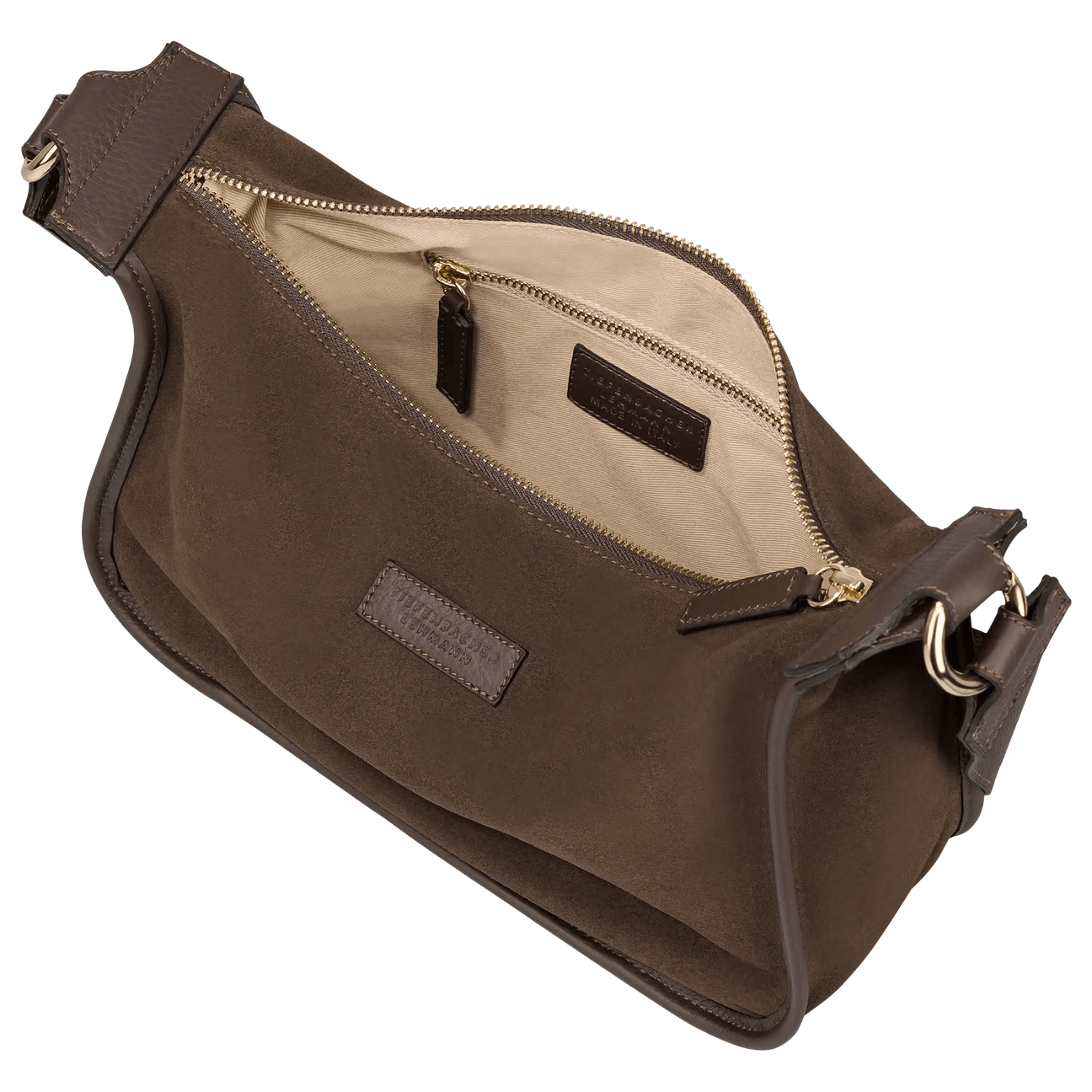Gefertigt aus feinstem Veloursleder in einer kleinen italienischen Ledermanufaktur, vereint sie edles Design mit funktionaler Alltagstauglichkeit.