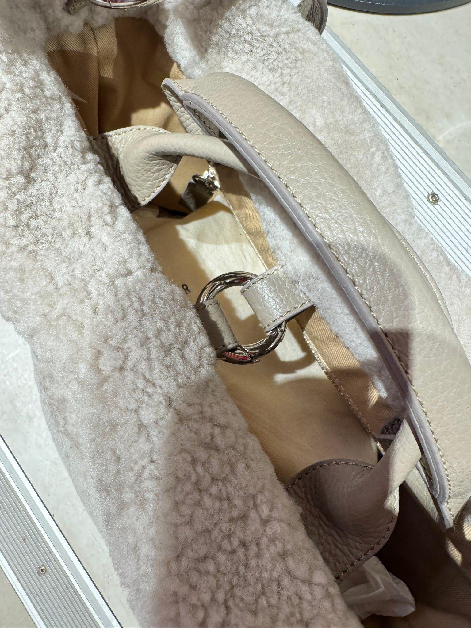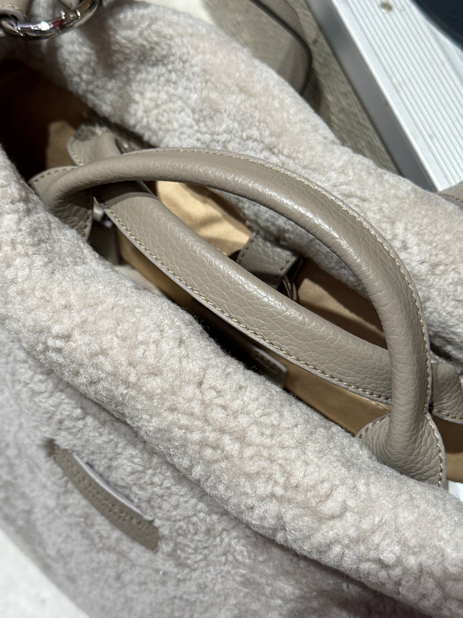 Die TOTE BAG midi von TIEFENBACHER LEHMANN in Lammfell. Ein elegantes Statement-Piece, das italienische Handwerkskunst, Funktionalität und zeitloses Design perfekt vereint.