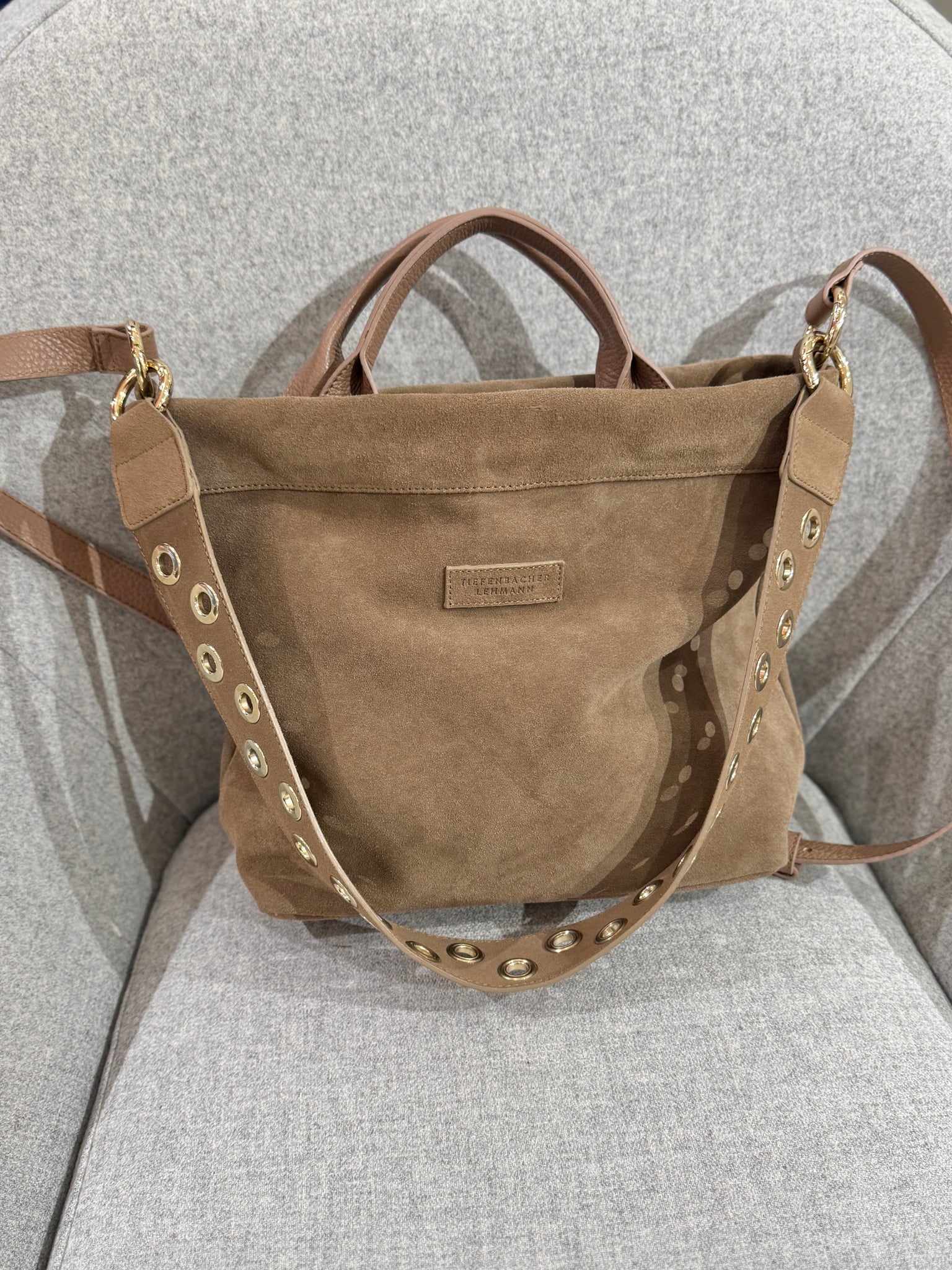 Die TOTE BAG midi von TIEFENBACHER LEHMANN in Velouleder. Ein elegantes Statement-Piece, das italienische Handwerkskunst, Funktionalität und zeitloses Design perfekt vereint.
